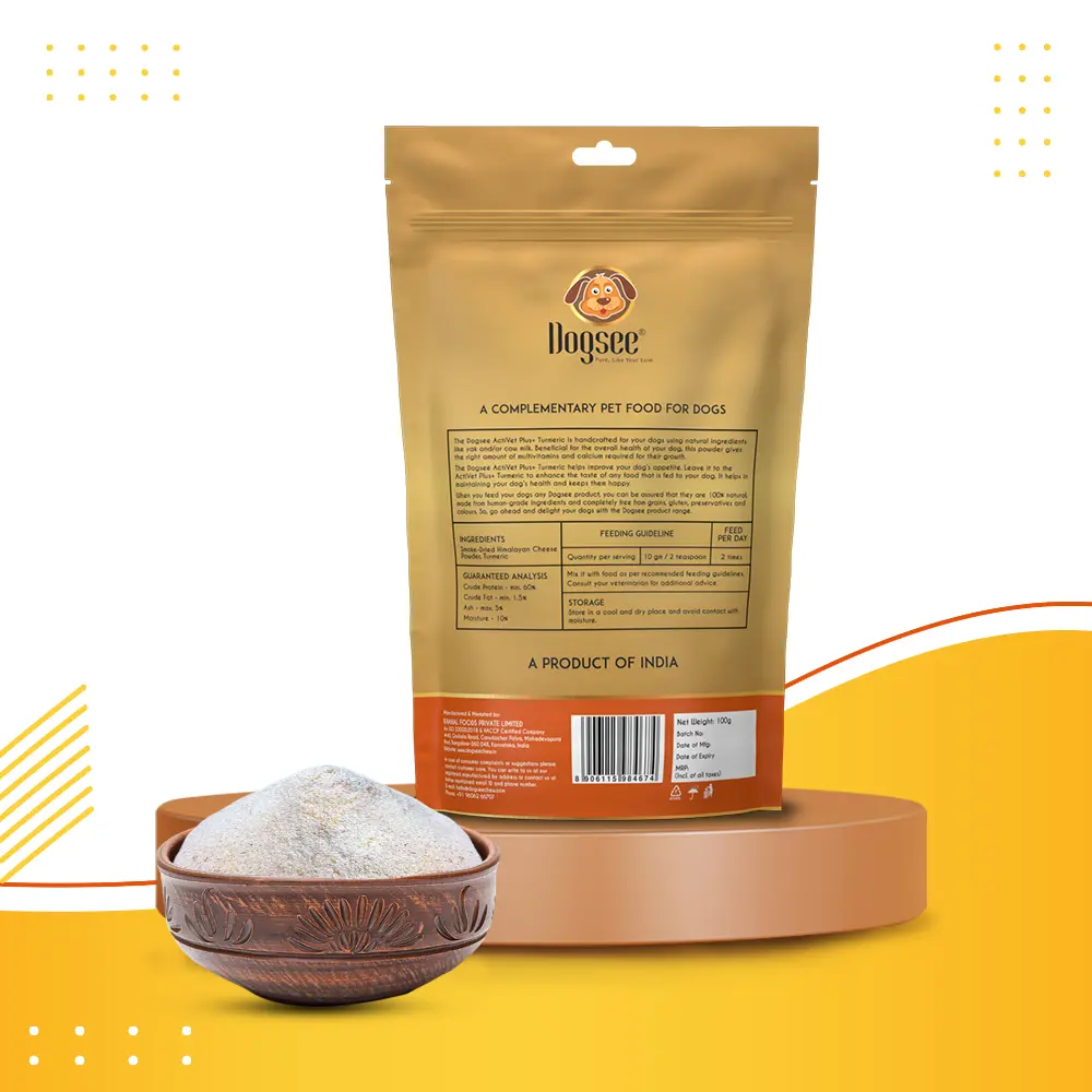 This Multivitamin Dog Food Seasoning powder is a 100% natural supplement made from powdered cheese and turmeric. Turmeric has anti-inflammatory properties and antioxidants, promoting overall health with optimum nutrition. Activet+ stimulates appetite and provides protein, fibre, calcium and multivitamins to your dog.