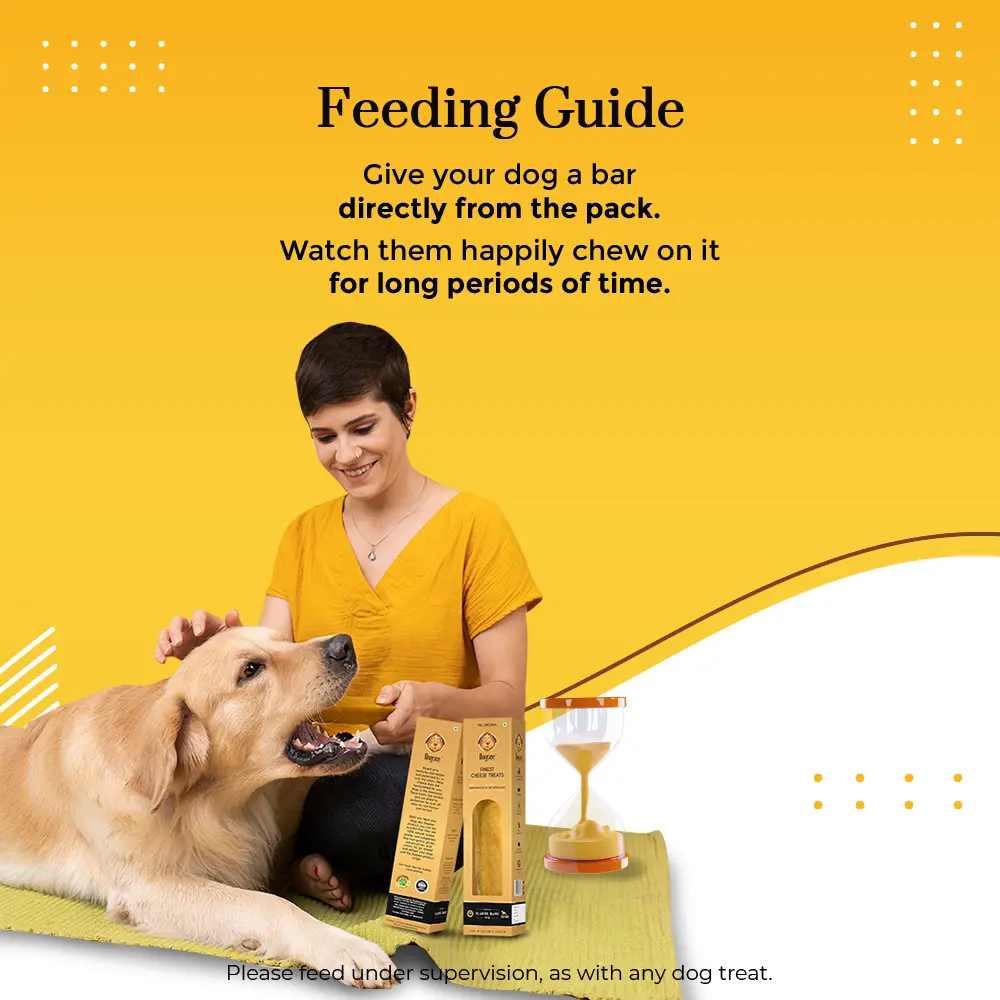 Give your dog a bar directly from the pack. Watch them happily chew on it for long periods of time. Please feed under supervision, as with any dog treat.